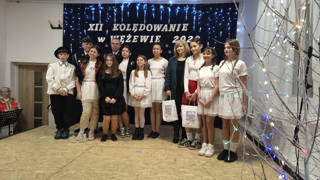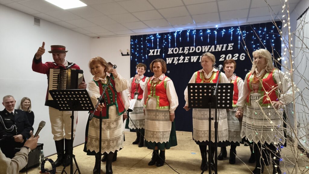 W dniu 31.01.2026r. po raz 12 odbyła się nasza cykliczna impreza „Kolędowanie w Wężewie”. Mimo dużego mrozu sala wypełniła się po brzegi publicznością. Przybyli zaproszeni goście, zaszczycili nas swoją obecnością Adam Krzemiński Poseł na Sejm RP, Paweł Mostowy – Starosta Przasnyski, Klaudia Traczyk-Wiceprzewodnicząca Rady Powiatu Przasnyskiego, członek Zarządu Powiatu Przasnyskiego Renata Wenda, reprezentanci Gminy Krasne Anna Kopka i Jacek Zembrzuski, Dyrektorzy Szkół – Wojciech Gołębiewski i Marcin Sokół, Dyrektor GBP- Renata Żmijewska oraz Zarząd Gminny OSP RP-Druhowie Artur Kraśniak i Radosław Wiktorek.